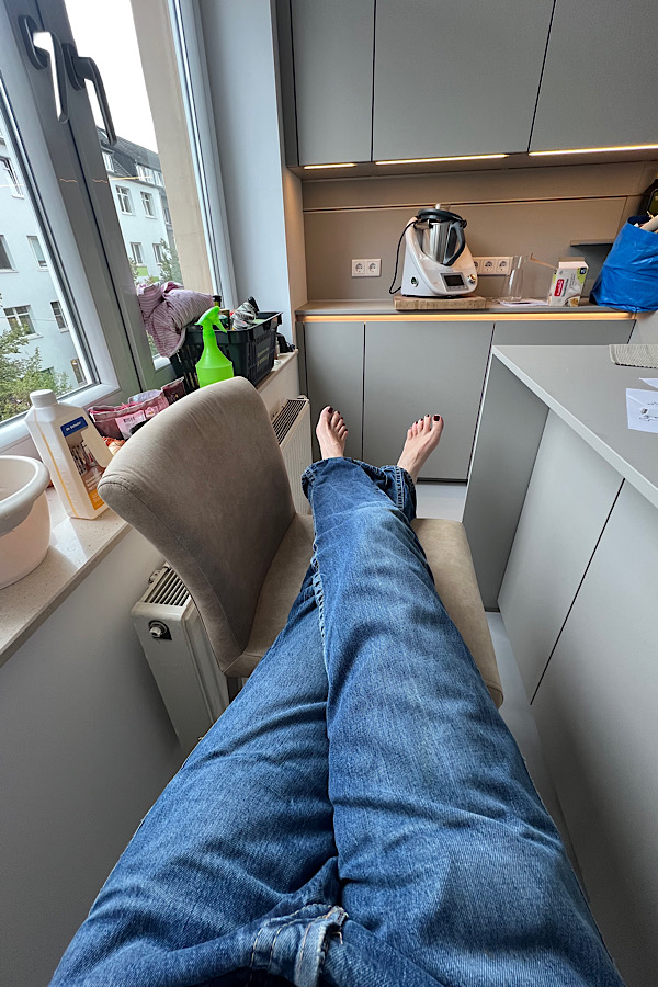 Als endlich die Küche kam, die Malerarbeiten aber im Rest der Wohnung noch längst nicht abgeschlossen waren, nahmen sie eine Dusche, um die Poren vom Staub zu befreien und wir aßen zusammen selbstgekochtes aus dem neuen Glück.